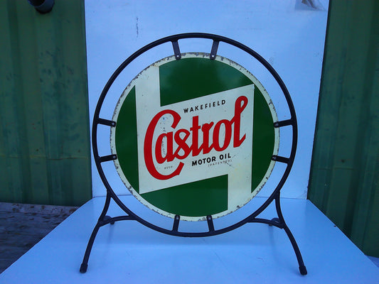Vintage Castrol metal sign on stand